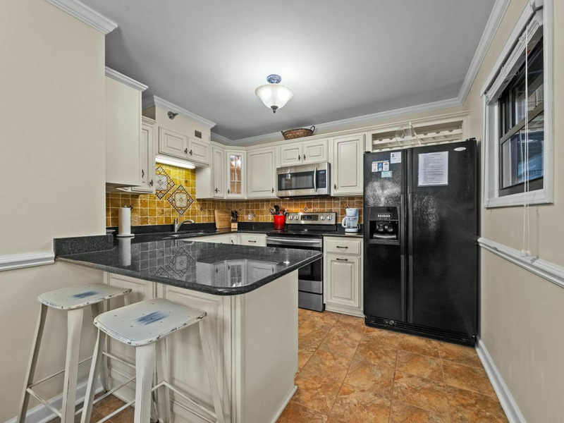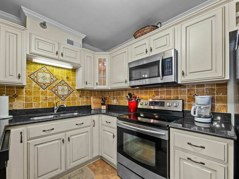 The modern kitchen includes granite countertops, custom cabinets and all the amenities you will need during your stay. Seat 6 at the dining table, 2 more at the counter, or take your meals outside on the covered balcony.
