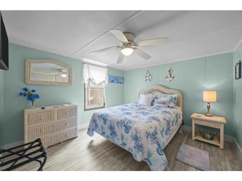 This is a lovely mobile home located on a large center island lot and only step to the beautiful white sand beaches of Topsail Island. With 2 bedrooms and 1 full bath this home is set-up to accommodate 6 guests comfortably.