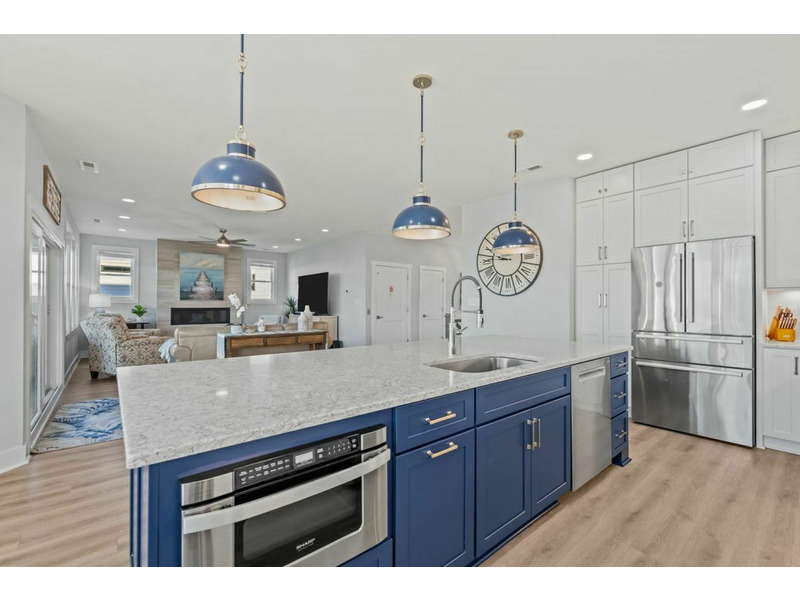 From the moment you step inside, the light-filled, open-concept design welcomes you with sophisticated finishes and coastal charm. This reverse floor plan maximizes the views, placing the chef's kitchen on the second level, where it flows seamlessly into the dining and living areas.
