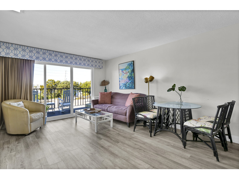 Hey, beach bums and wave riders! Chill out in your coastal escape, where the relaxed beach vibe flows into modern comfort. Located on the first floor with a private balcony overlooking the harbor, this spot is perfect for unwinding after a day in the sun.