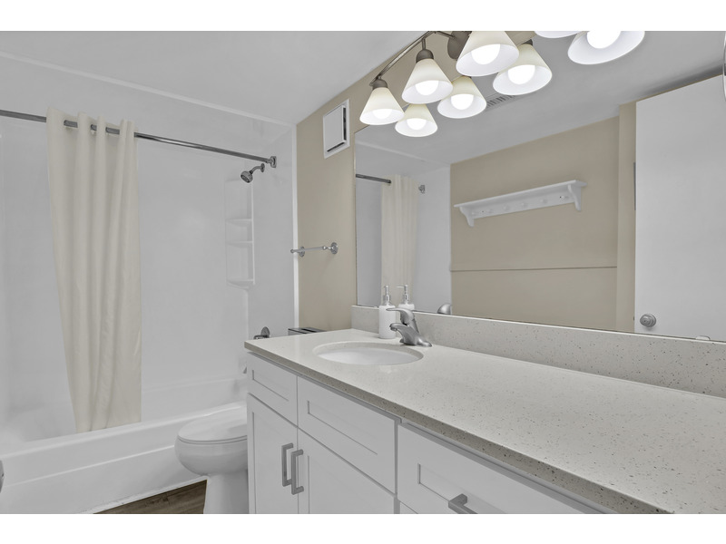 Relax in Style: The bathroom features a variety of bath amenities and a tub/shower combo.