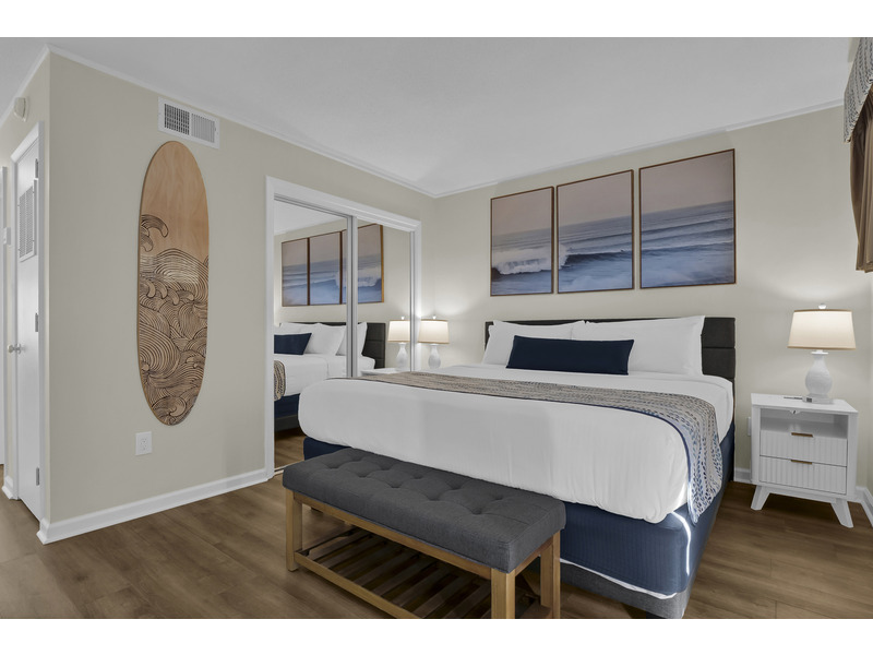 The king-size bed in the bedroom and the Murphy-style queen bed in the living room mean plenty of room to crash after a day of shredding or sunbathing. Two TVs make sure your crew doesn't fight over the remote, and the updated kitchenette is ready for action, with a full fridge, microwave & convection oven, two-burner cooktop, dishwasher, Keurig, and even an ice maker to keep your drinks chill. Pots, pans, and all the basics are included if you're feeling chef-y.