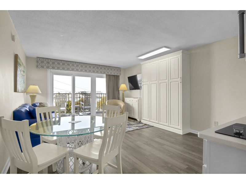 The king-size bed in the bedroom and the Murphy-style queen bed in the living room mean plenty of room to crash after a day of shredding or sunbathing. Two TVs make sure your crew doesn't fight over the remote, and the updated kitchenette is ready for action, with a full fridge, microwave & convection oven, two-burner cooktop, dishwasher, Keurig, and even an ice maker to keep your drinks chill. Pots, pans, and all the basics are included if you're feeling chef-y.