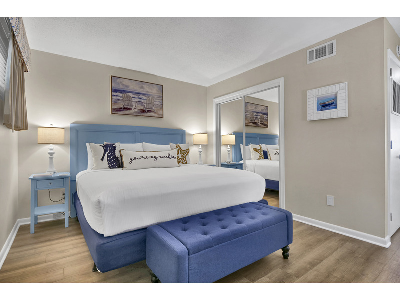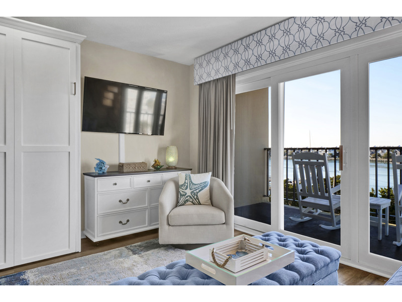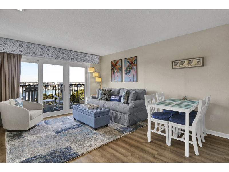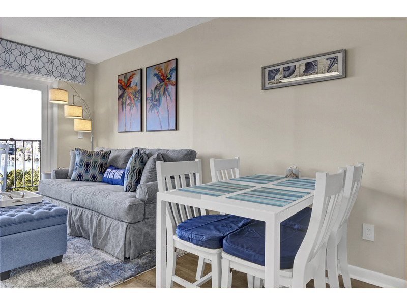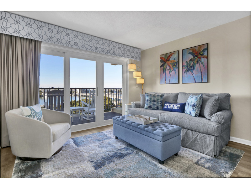 Hey, beach bums and wave riders! Chill out in your coastal escape, where the relaxed beach vibe flows into modern comfort. Located on the fourth floor with a private balcony overlooking the harbor, this spot is perfect for unwinding after a day in the sun.
