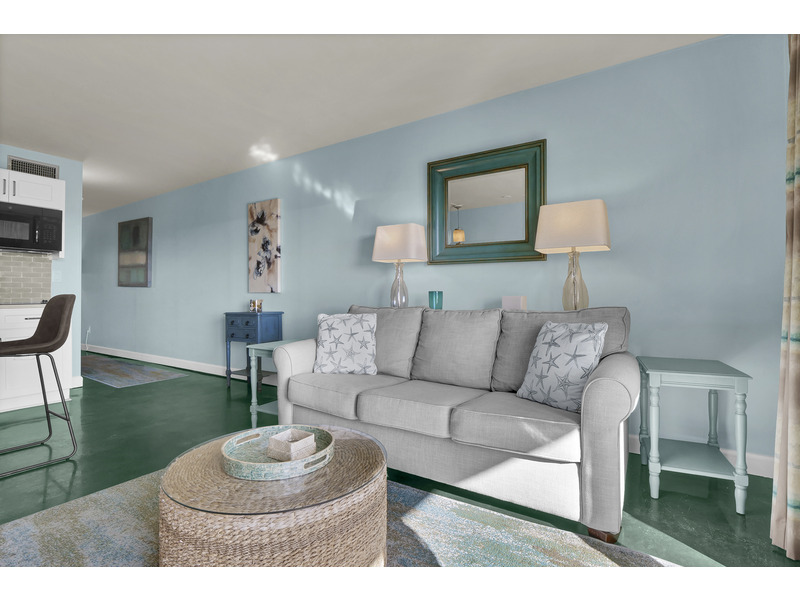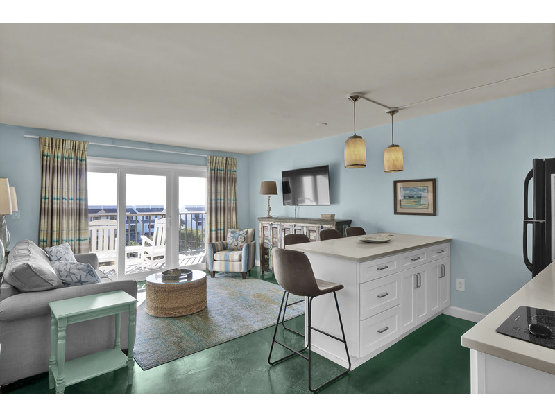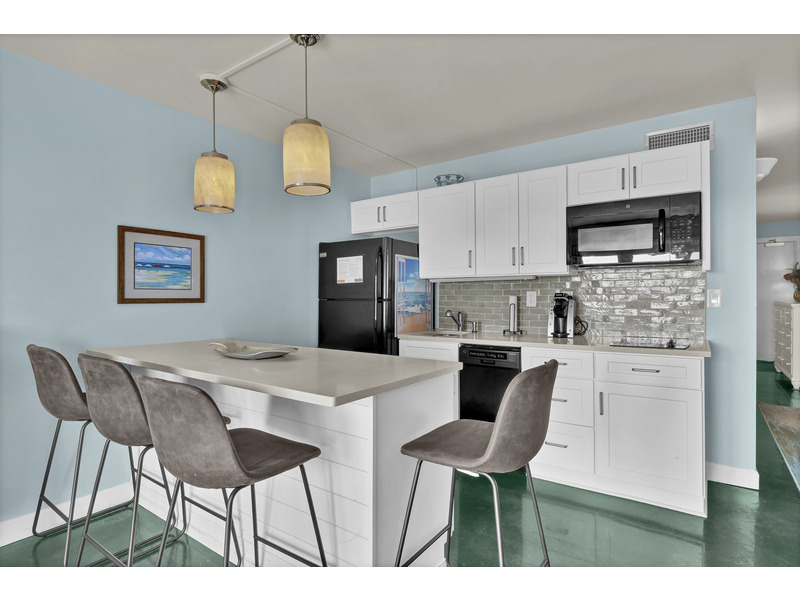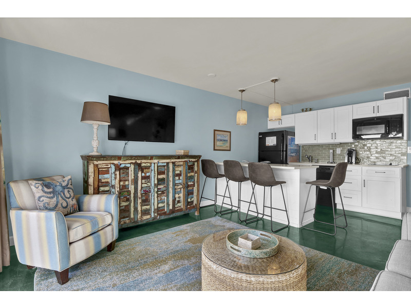 The king-size bed in the bedroom and a sofa bed in the living room mean plenty of room to crash after a day of shredding or sunbathing. The updated kitchenette is ready for action, with a full fridge, microwave & convection oven, two-burner cooktop, dishwasher, and a Keurig. Pots, pans, and all the basics are included if you're feeling chef-y.