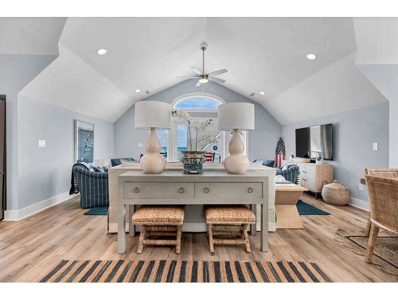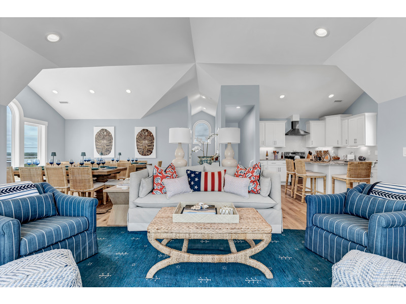 Wake up to panoramic oceanfront sunrises and end each night with glowing soundside sunsets from the home's many furnished decks. With private community beach access just steps away, spending your day on the sand has never been easier.