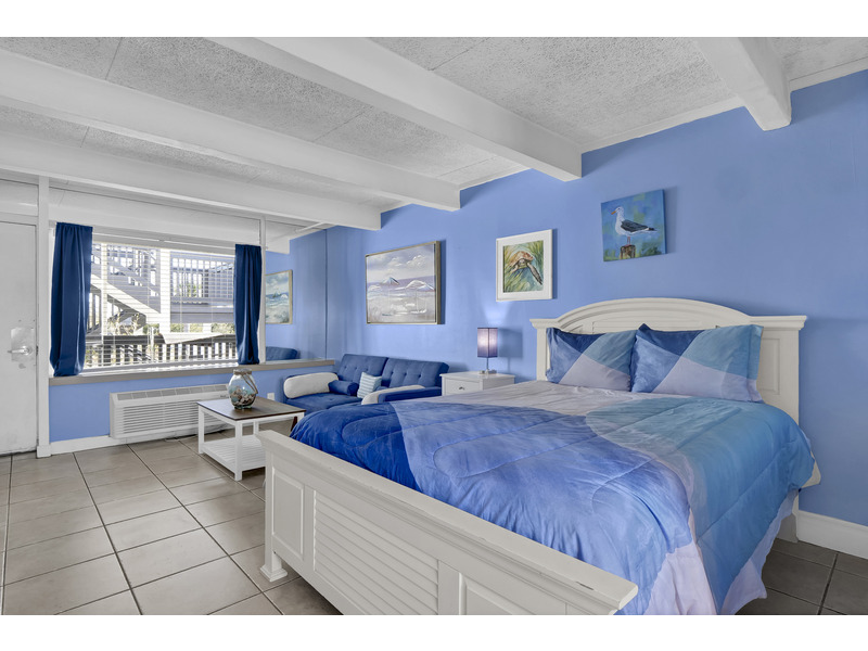 Step inside to find a bright and welcoming space designed for relaxation. The studio features a plush queen bed and a cozy futon, ideal for unwinding after a day at the beach or pool. Freshly laundered linens and towels are provided, ensuring a hassle-free stay from the moment you arrive.