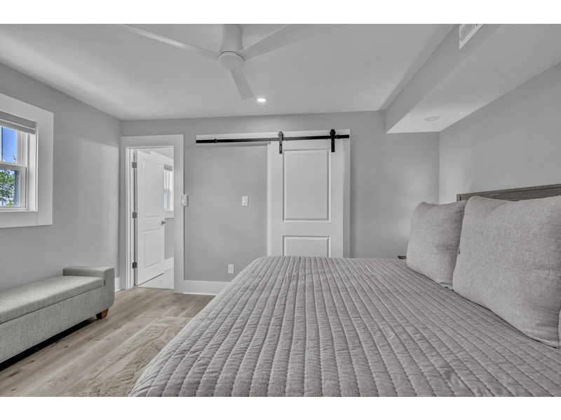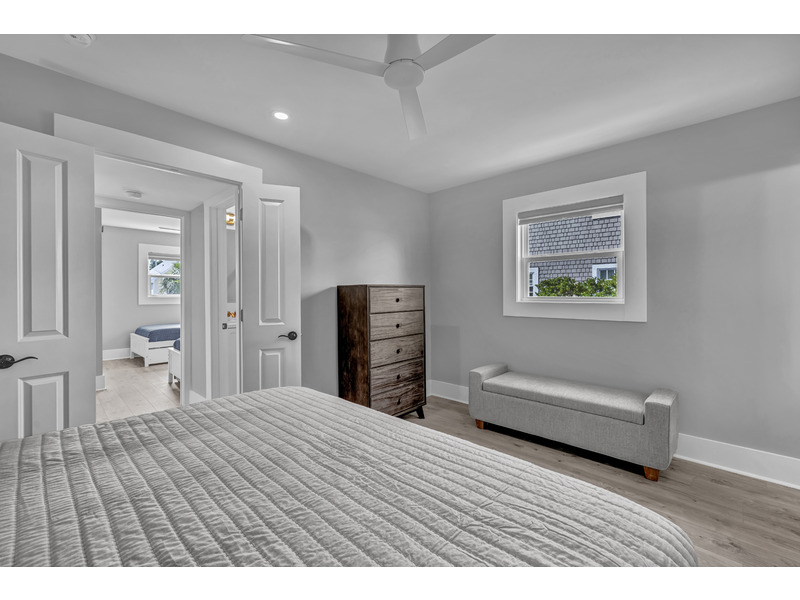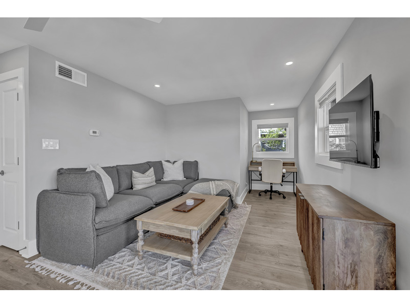 The second bedroom features a spacious queen bed, while the third bedroom includes two twin bedsgreat for kids or friends. These two rooms share a beautifully updated hall bathroom.
