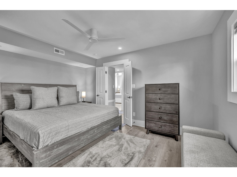 The primary suite is a peaceful retreat with a king bed, private full bath, an spa-like fixtures.