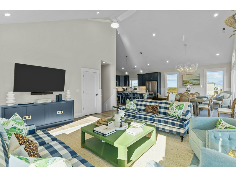 Inside you'll find a spacious open-concept living area that's perfect for entertaining. The fully stocked kitchen features modern appliances and a large island with seating, making it easy to prepare and enjoy meals together. Multiple gathering spaces throughout the home ensure everyone has room to spread out, while still being able to come together for family dinners, game nights, or movie marathons on the smart TVs.