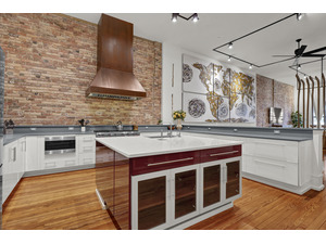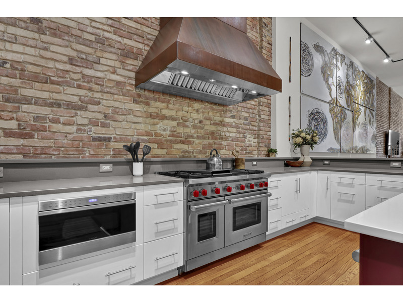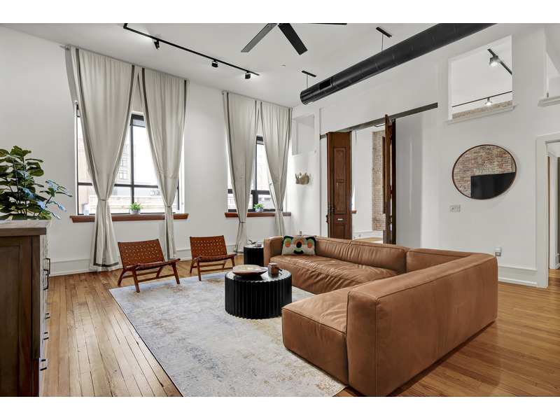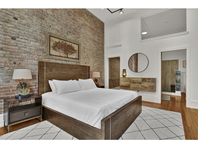Historic charm with exposed brick, hardwood floors, and tall ceilings.