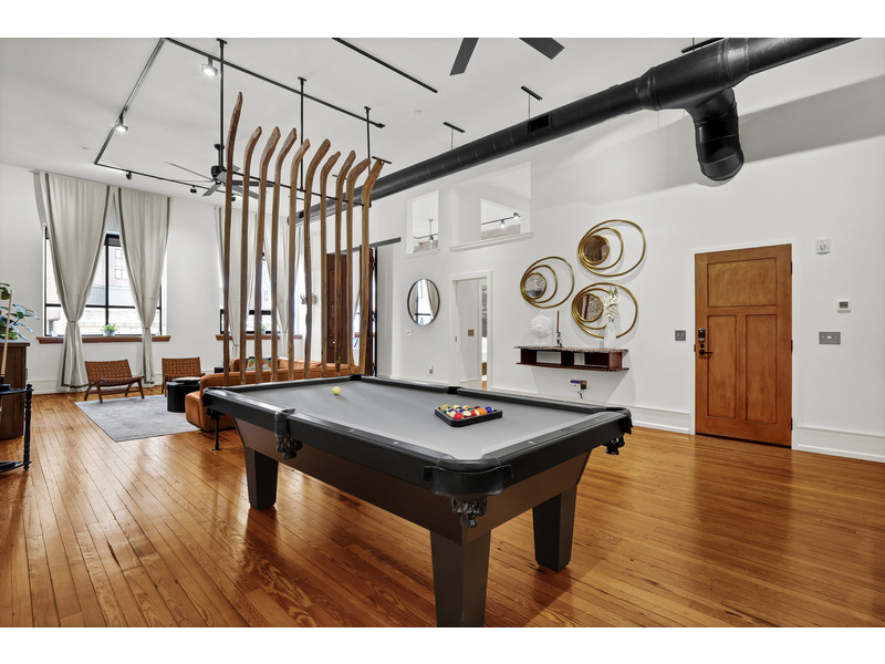 The standout features include a premium chef's kitchen outfitted with top-tier appliances, making gourmet cooking effortless. The open living area includes a pool table, creating a fun and inviting space for friendly competition and evening entertainment. Guests can also unwind in the spa-style bathroom with a jacuzzi soaking tub, perfect for relaxing after walking the Riverwalk or enjoying Wilmington's vibrant dining and nightlife scene.
