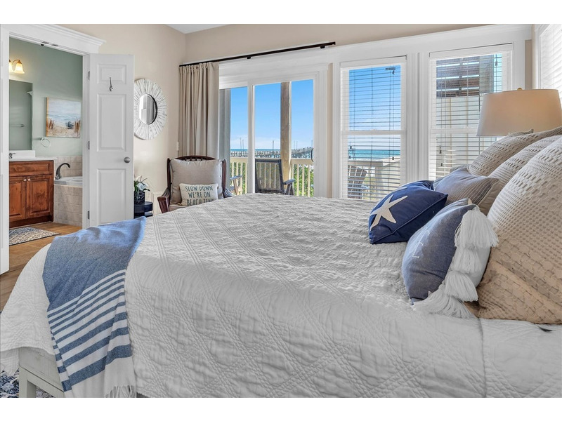 Each of the four private bedrooms is designed for a restful nightâs sleep. The primary suite offers a king bed, private balcony, and sweeping beach views â wake up to the sound of the waves and drift off to the rhythm of the ocean.