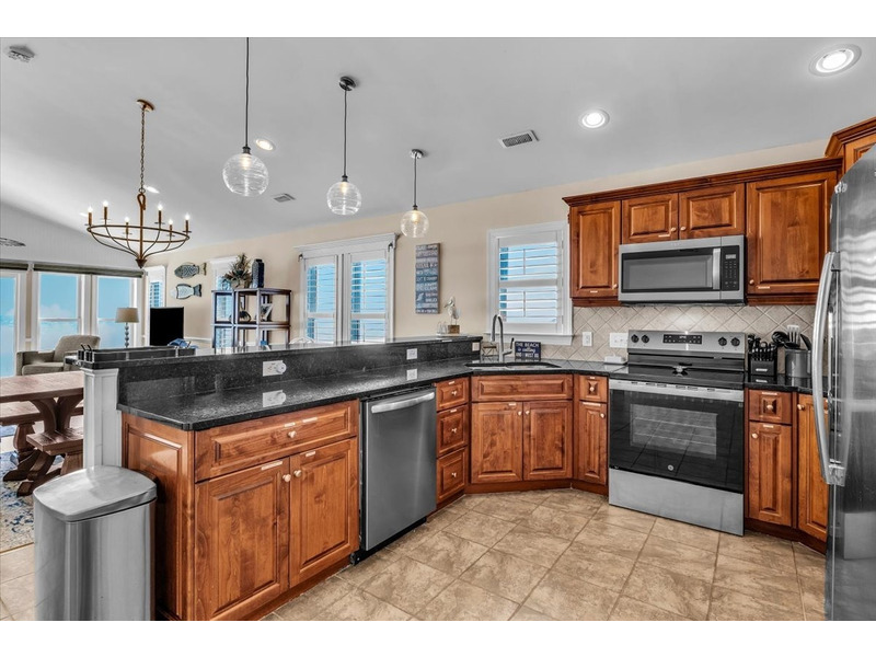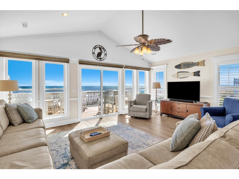 Step inside and feel the coastal charm in every room. The open-concept living area features a wall of ocean-view windows and a fully equipped kitchen with seating for 10 â perfect for gathering with family and friends.