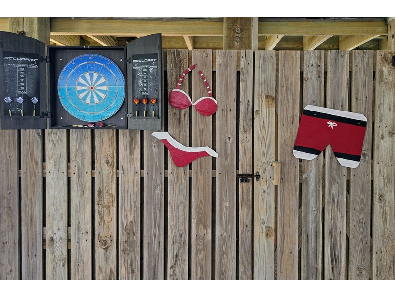 While the interior exudes relaxed sophistication, the exterior of Cans in the Sand is all about fun and flair. The colorful, lively outdoor space includes a tiki bar, dart board, cornhole, and Adirondack chairs for soaking in the beach vibes. Itâs the perfect hangout for the adults to enjoy a drink and unwind after a sunny day.