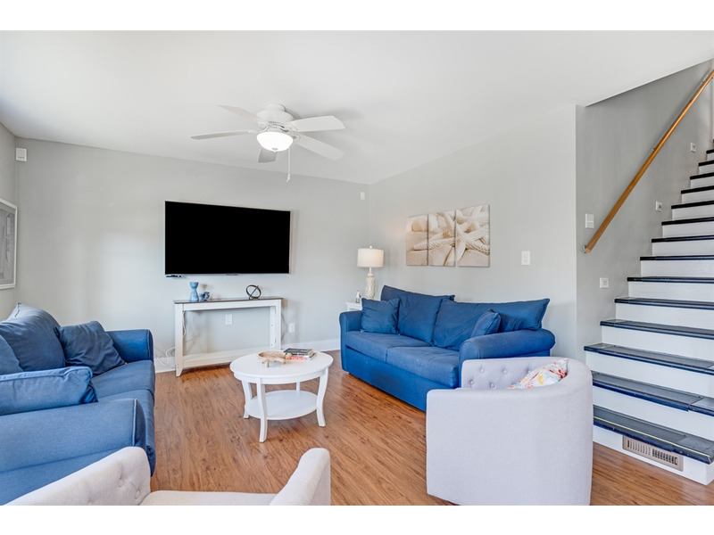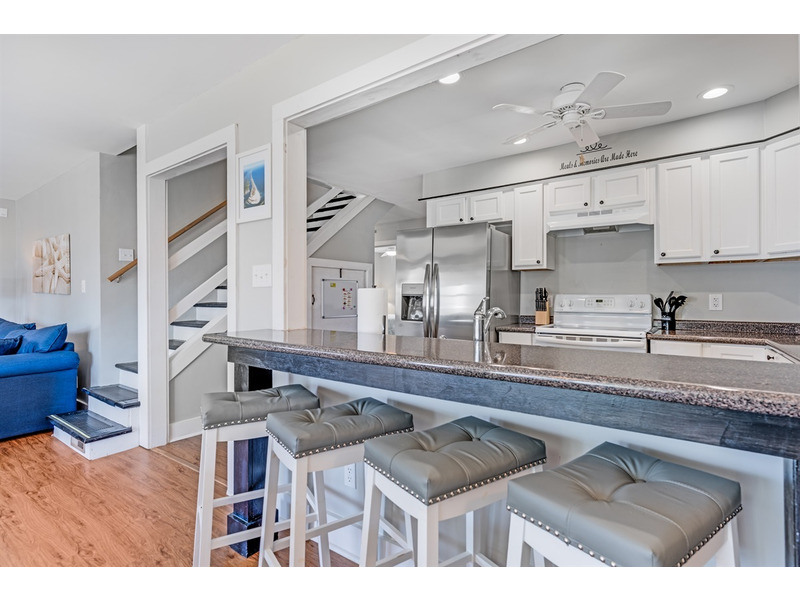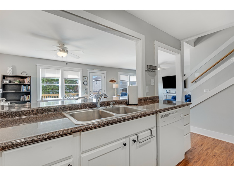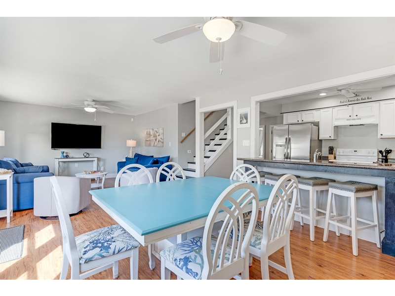 The heart of the home features an open-concept kitchen, dining area, and living room, ideal for family gatherings, shared meals, and game nights. The well-equipped kitchen has everything you need to prepare your favorite dishes, while the comfortable living room invites you to kick back and unwind. Step outside onto the deck for additional seating, perfect for morning coffee or evening cocktails.