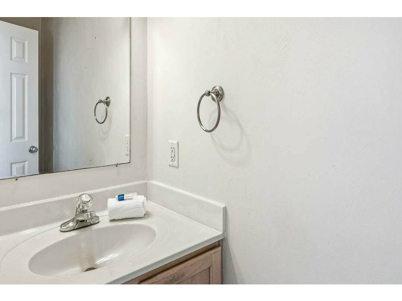 Mid-Level: Rec Room with Smart TV, Pool Table, Foosball Table, Kitchenette (microwave, coffee maker, and sink), Additional Table (seats 8), and Deck Access; Queen Bedroom with 40” Smart TV and Deck Access, shares Jack and Jill Full Bathroom with Bedroom with 2 Bunk Beds (Twin over Twin); Queen Bedroom with Smart TV and Deck Access, shares Jack and Jill Full Bathroom with Bedroom with 2 Twin Beds and Smart TV; Hall Half Bathroom.